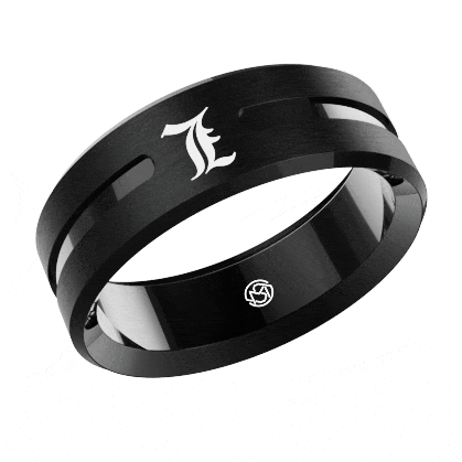 The distinctive "L" engraving on the ring pays homage to the iconic character's keen intellect and enigmatic persona. The sleek black exterior mirrors L's mysterious and unconventional approach to solving crimes, making this ring a symbol of intellectual prowess and unmatched detective skills.