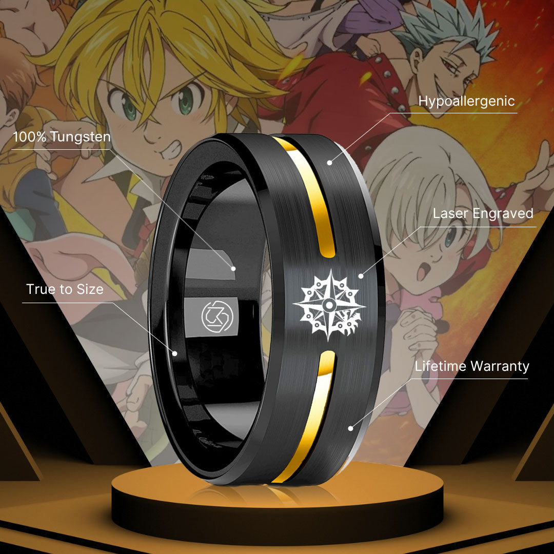 Embrace the power and mystique of the Seven Deadly Sins with our exclusive Seven Deadly Sins 18K Gold tungsten ring. Crafted to perfection, this timeless piece captures the essence of the legendary anime series.