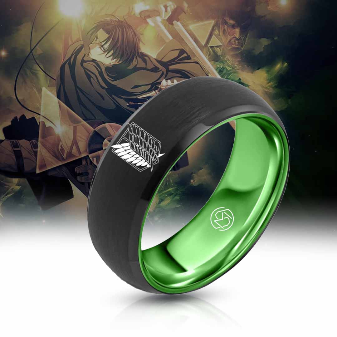 Show your allegiance to the Survey Corps with our exclusive Wings of Freedom ring, inspired by the iconic anime series, Attack on Titan. This timeless piece is crafted from durable tungsten and features cutting-edge engraving to ensure the design remains pristine over time.