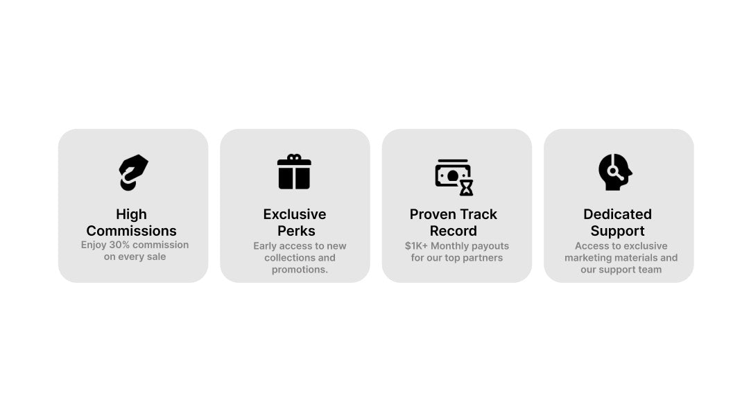 You earn 30% commission on every sale made through your unique affiliate link. For example, if a customer spends $100, you’ll earn $30.
