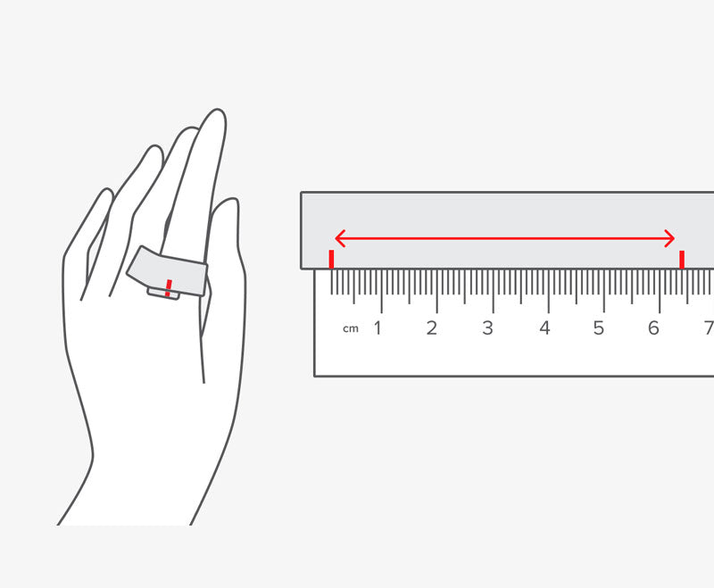 of the ruler and measure the part that touches your finger. - Use our Ring Size Chart to find the right ring size based on your measurement.